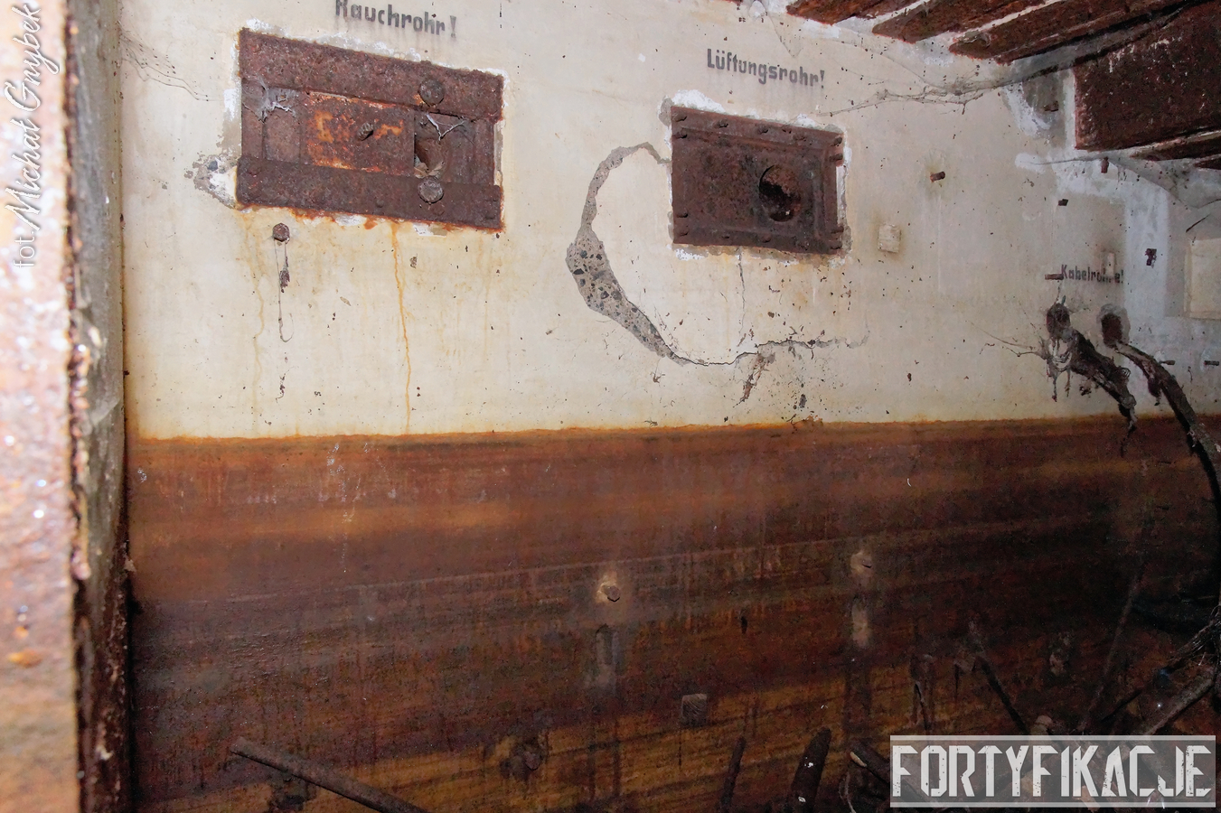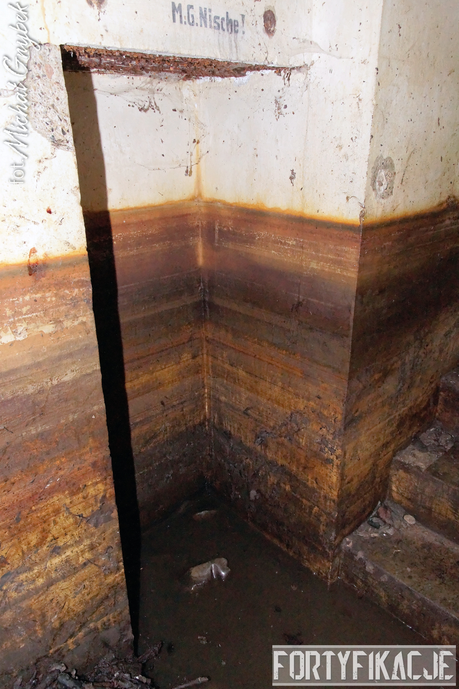 Przez długi czas wnętrze schronu było praktycznie niedostępne. Mimo, że wznoszący go Niemcy zadbali o zabezpieczenie konstrukcji przed przenikaniem lub podniesieniem się wód, to z biegiem czasu Unterstand nabrał wody. Ślady na ścianach wskazują, że jej poziom potrafił być naprawdę wysoki. Prócz wody obiekt wypełniały śmieci i błoto. Od pewnego czasu schrony Pozycji Nysy znalazły swych opiekunów. Z charakteryzowanego w niniejszym poście stanowiska została odpompowana woda. Sukcesywnie też zaczęto oczyszczać go z zalegających go mułu i odpadów. Umożliwiło to eksplorację obiektu! Kimkolwiek jesteście - dziękuję! Mam nadzieję, że opieka ta jest kontynuowana! 😏