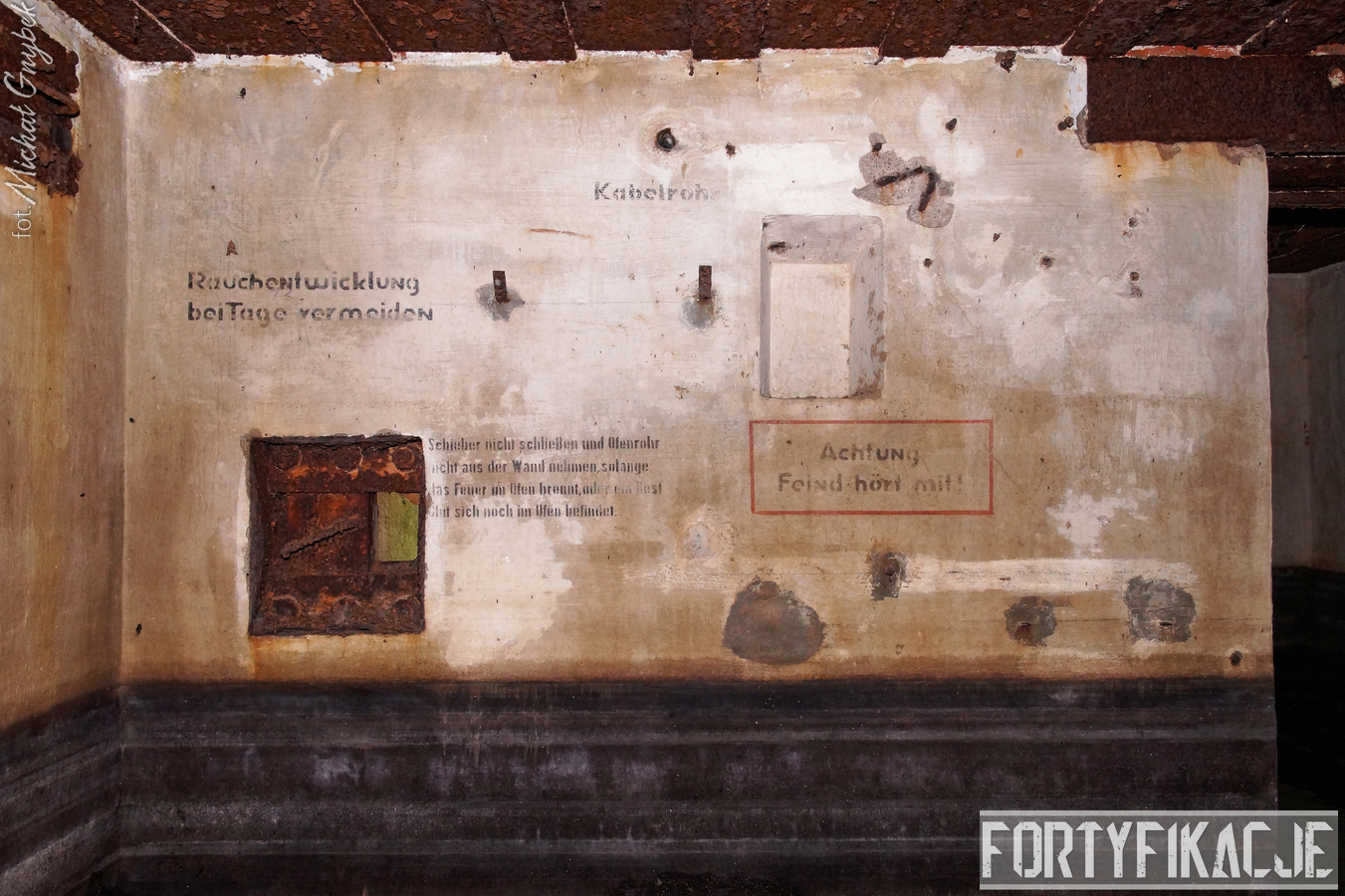 Dzięki wysokiemu poziomowi wody schron jest obecnie rzadko odwiedzany, co sprawiło, że jest stosunkowo mało niezdewastowany (np. bohomazami). Dzięki temu można podziwiać tu szereg dobrze zachowanych napisów eksploatacyjnych oraz ciekawe stalowe elementy wyposażenia, np. zawory systemu wentylacyjnego. Mam nadzieję, że pozostanie tak jak najdłużej! Pamiętaj: odwiedzając takie miejsce pozostaw jej w jeszcze lepszym porządku niż je zastałeś!