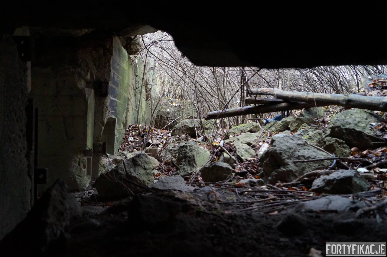 Czasami bywa i tak, że i w porze jesienno-zimowej poszukiwany schron skutecznie skrywa się przed eksploratorami. Tak właśnie jest ze schronami Pommernstellung w okolicach Santoka, szczególnie z tymi ukrytymi na stromym zboczu nadwarciańskiej moreny. Jeden z nich mogą Państwo obejrzeć na poniższych zdjęciach. Jego zadaniem było ryglowanie drogi biegnącej wąwozem w głąb pozycji w kierunku północnym.