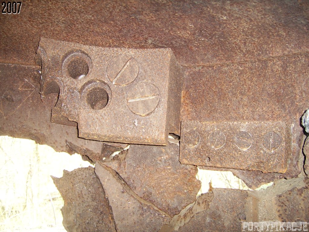 Werkgruppe "Ludendorff"! I obiekt bardzo dla niej charakterystyczny - Pz. W. 867, zwany przez niektórych "hełmem Lorda Vedera". Obiekt z całej Werkgruppe ocalał w chyba najwyższym stopniu - w efektowny sposób została tutaj uszkodzona jedynie kopuła 2P7, którą, prócz eksplozji, zniszczył również ogień prowadzony w jej stronę. Na powierzchni pancerza widać efekty nieskutecznego ognia: zagłębienia, ślady, rykoszety... Cały Stand (?) miał formę 3-kondygnacyjnej wieży połączonej z Pz. W. 865 podziemnym korytarzem.