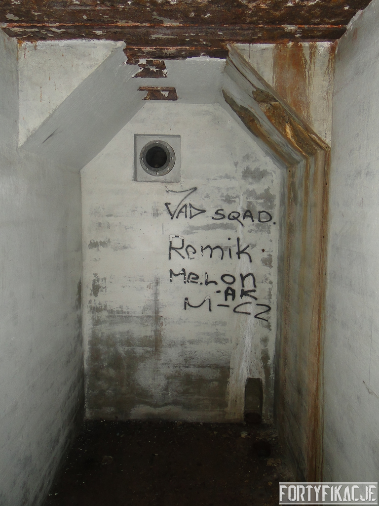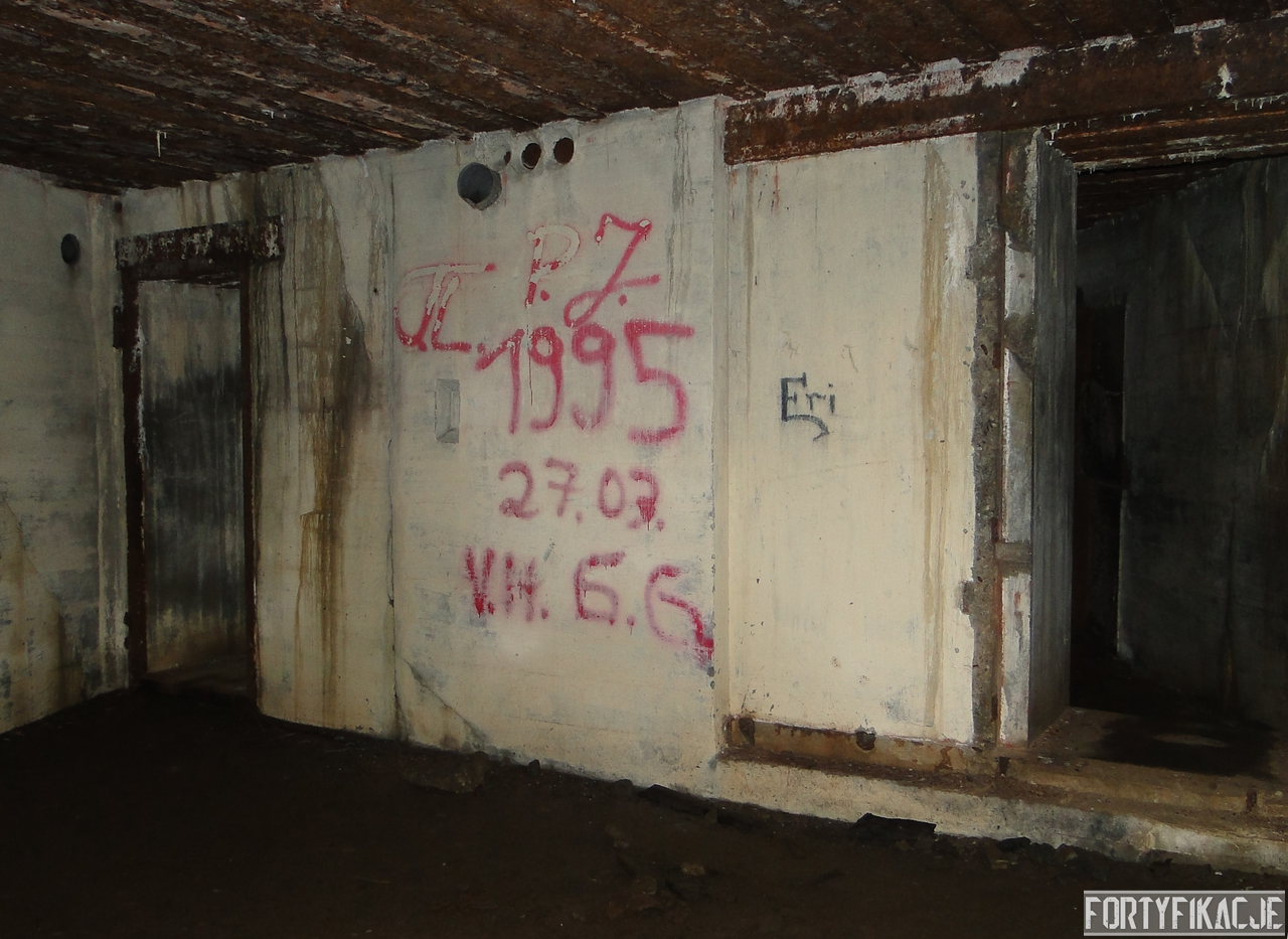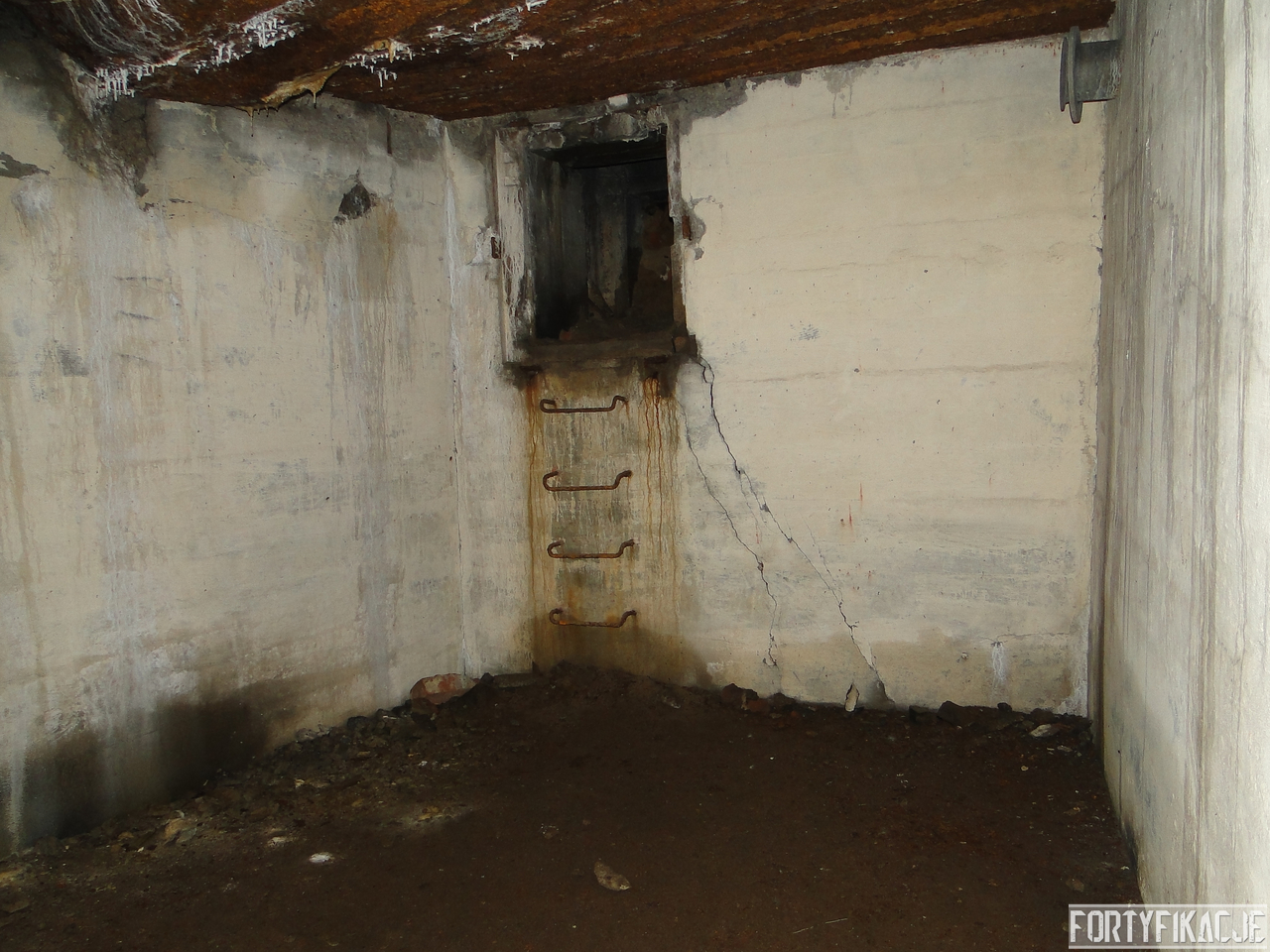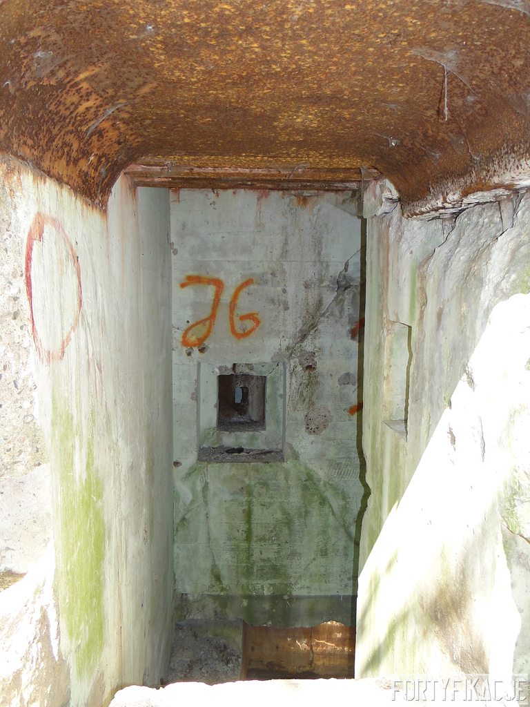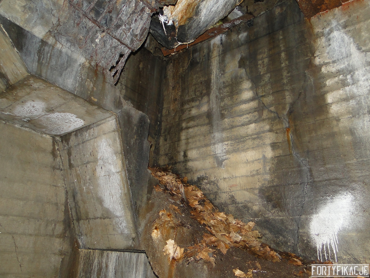 Wejdźmy na pierwszą i najwyższą kondygnację. Mimo dużych zniszczeń, które dotknęły najmocniej właśnie tą kondygnację można tu znaleźć kilka interesujących pomieszczeń i pozostałości po wyposażeniu. Zachowała się kazamata z płytą stalową 7P7 oraz izby pogotowia i załogi. Duża część tej kondygnacji jest zasypana całkowicie gruzem.