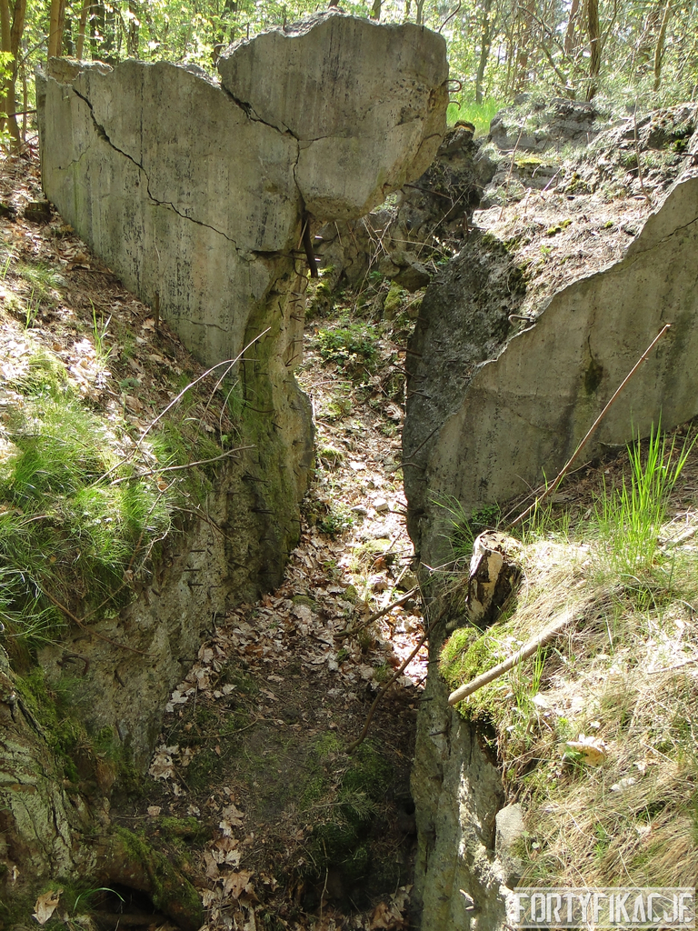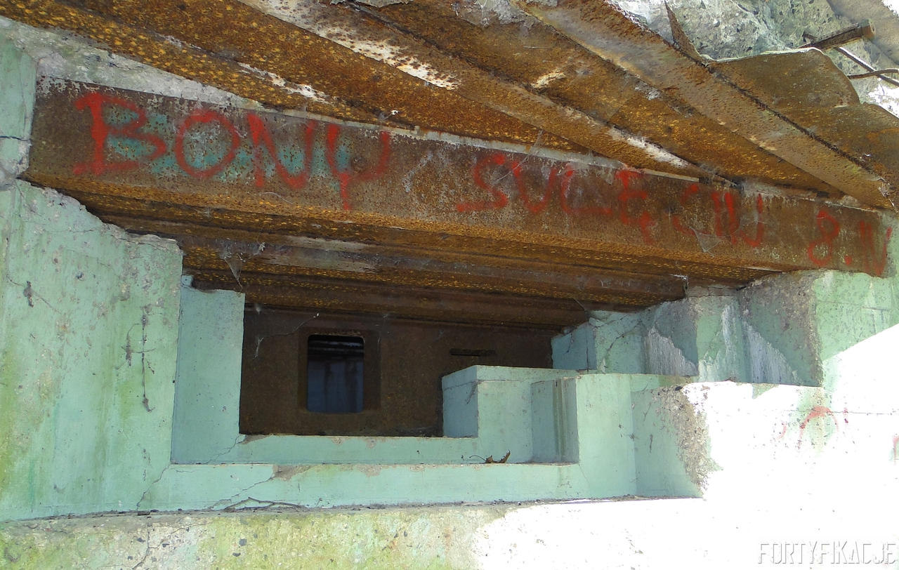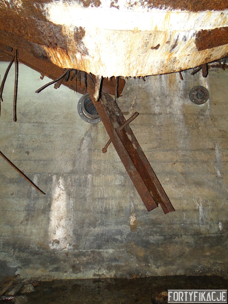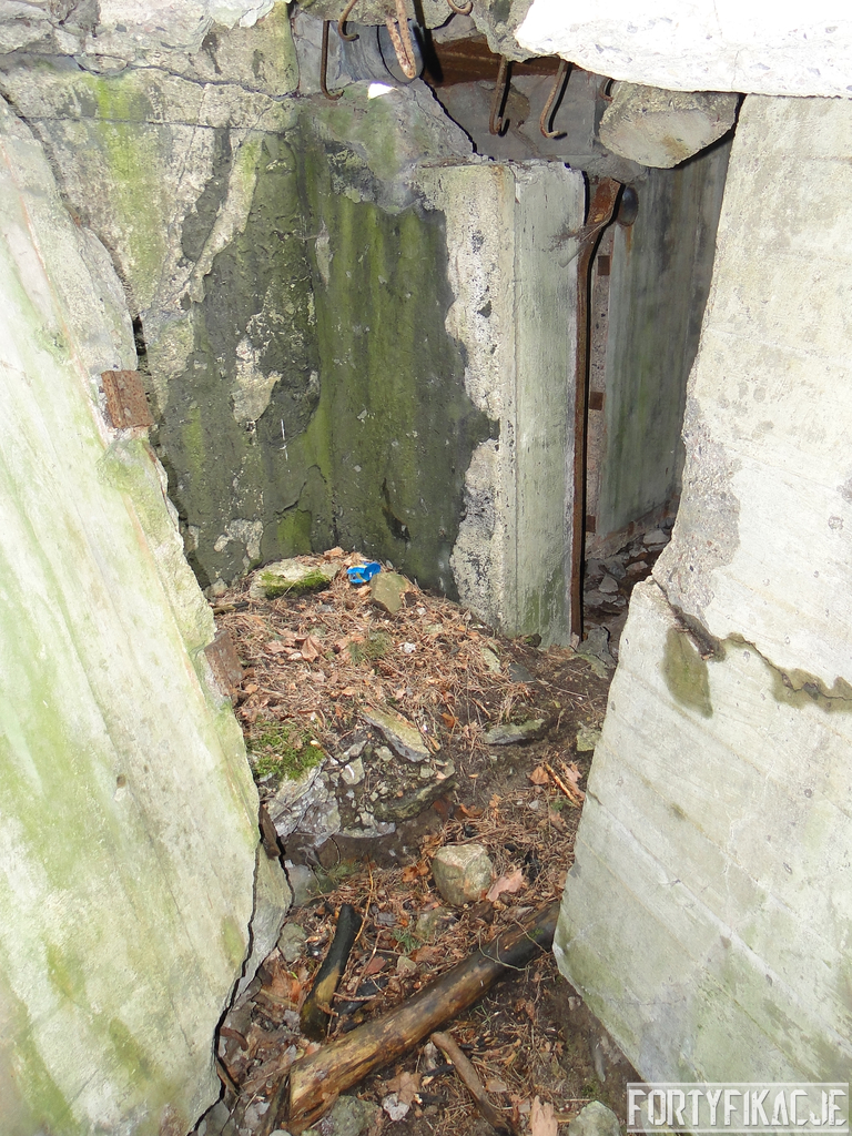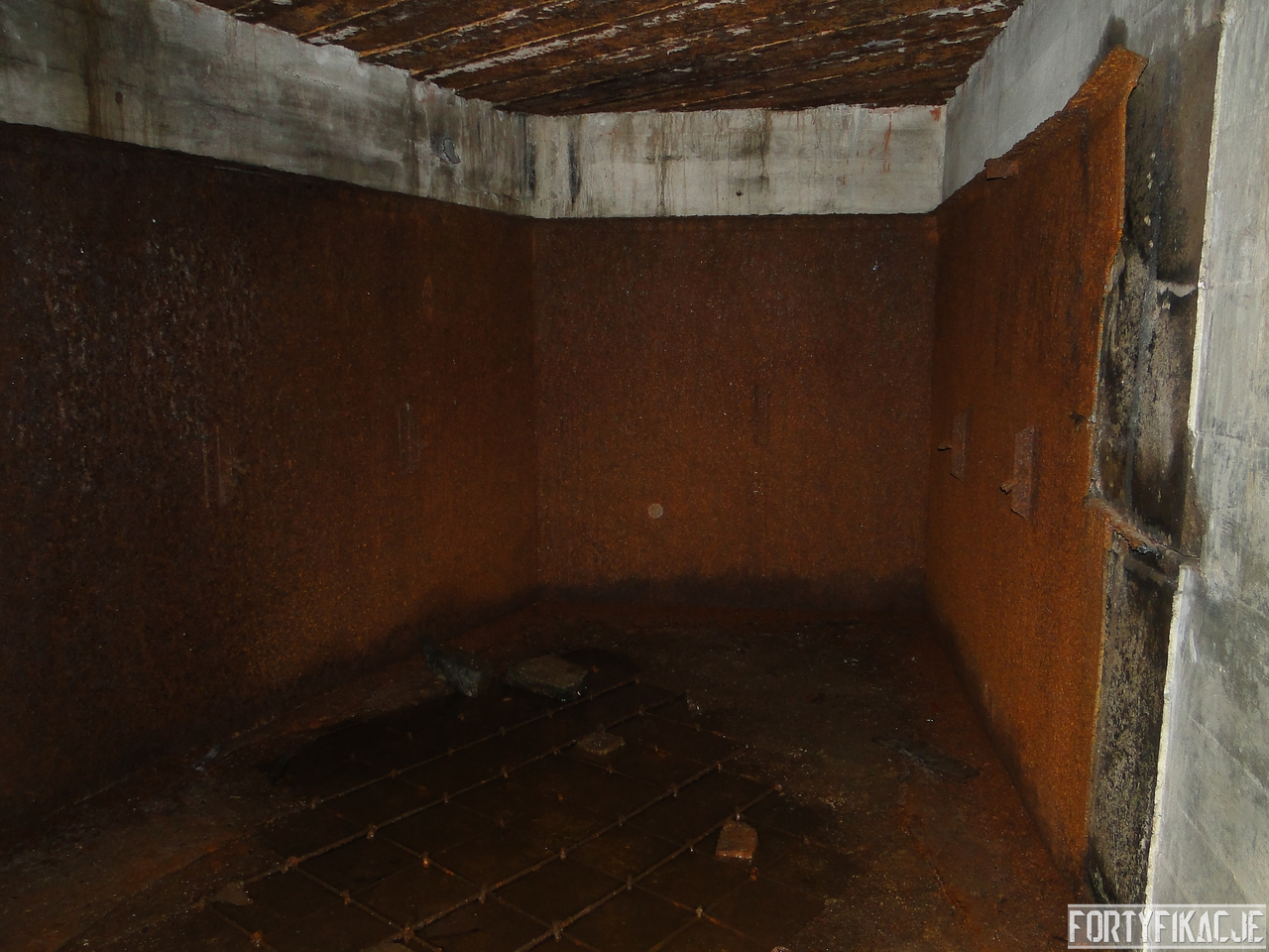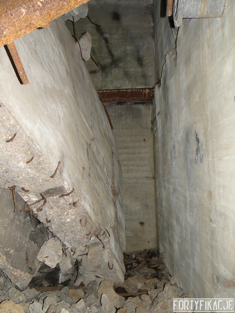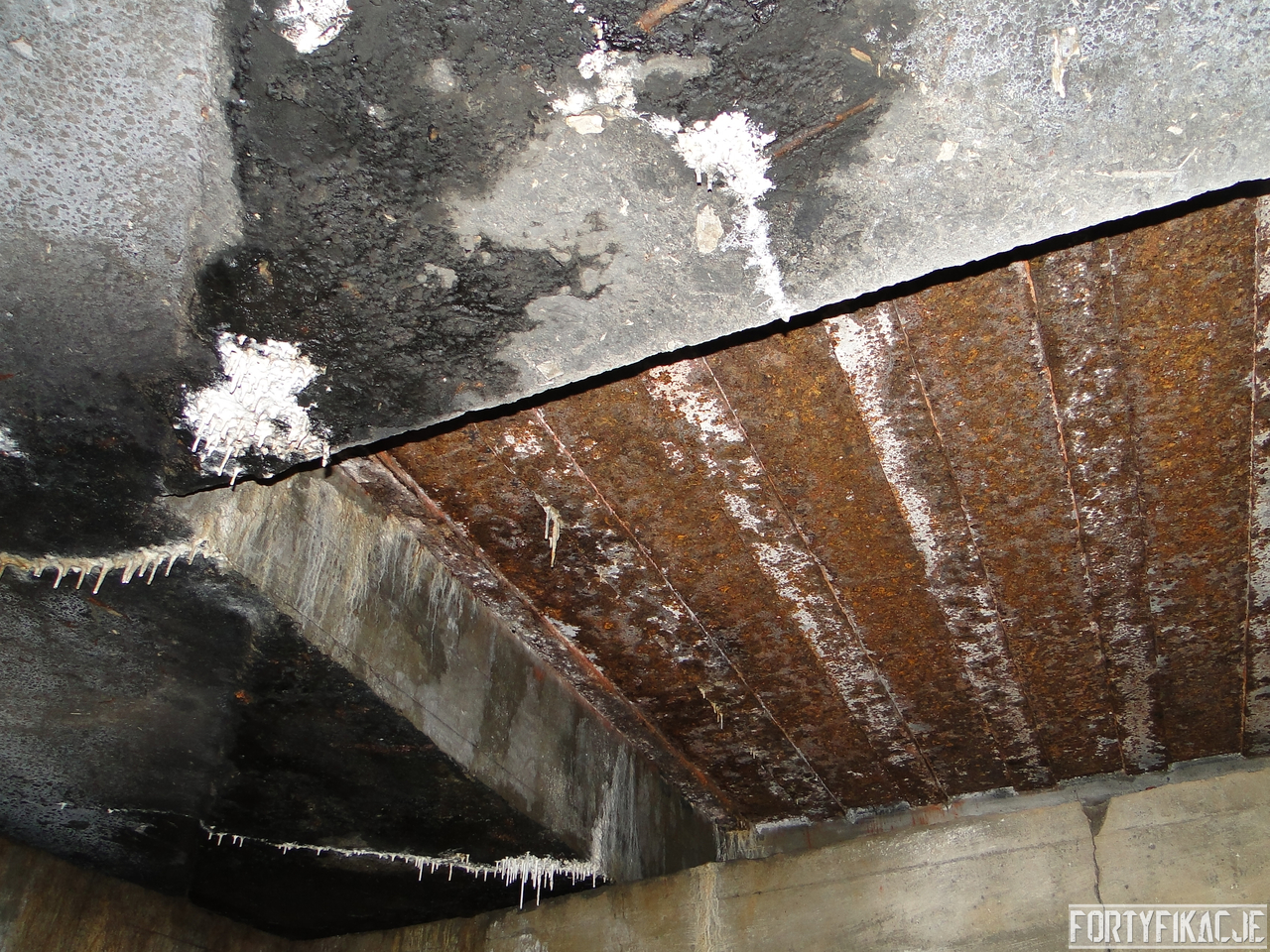 Wejdźmy na pierwszą i najwyższą kondygnację. Mimo dużych zniszczeń, które dotknęły najmocniej właśnie tą kondygnację można tu znaleźć kilka interesujących pomieszczeń i pozostałości po wyposażeniu. Zachowała się kazamata z płytą stalową 7P7 oraz izby pogotowia i załogi. Duża część tej kondygnacji jest zasypana całkowicie gruzem.