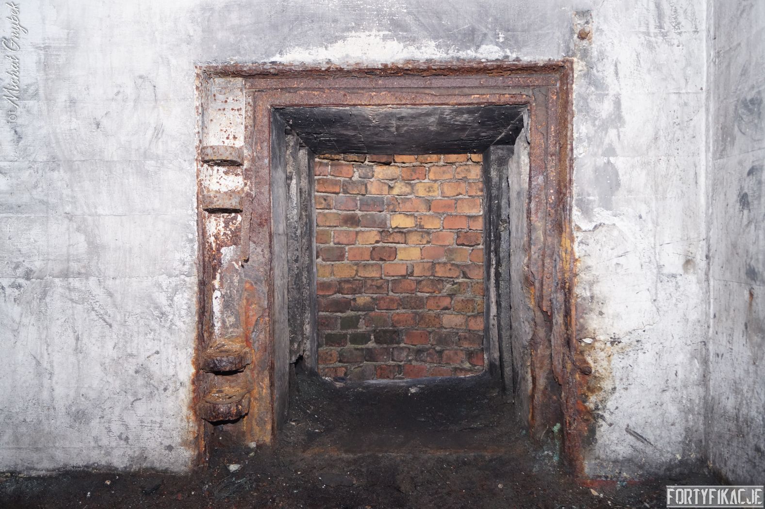 Zajrzyjmy do środka! Ersatz Kleinstwerk był konstrukcją, której bliżej było do definicji Stand'u niż do Werk'a. Z pewnością nie było to dzieło samowystarczalne, a zdolne do walki okrężnej jedynie teoretycznie. Cały schron ograniczał się do kilku pomieszczeń. Do obiektu można było dostać się przez dwa wejścia. Prowadziły one do bloku wejściowego, w którym nie uświadczymy dołów pułapek. Blok pełnił również rolę śluzy gazoszczelnej. Z bloku wejściowego mogliśmy dostać się do największej izby - była to dość przestronna izba załogi. W jej ścianach przetrwały dwie tarcze, tzw. "skrzynki", w tym jedna w całkiem dobrym stanie. Przestronność była jedynie pozorna: znajdowały się tu prycze dla załogi oraz drużyny wypadowej, łącznie 24 sztuki! Z bloku wejściowego natomiast możemy przejść do dwóch pomieszczeń: